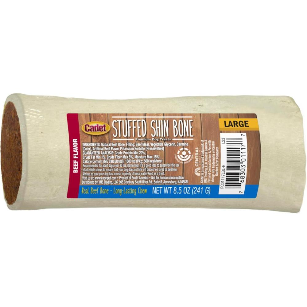 Cadet Stuffed Shin Bone - Highly Digestible, High Protein, Long-Lasting Dog Chew Bone for Aggressive Chewers, Supports Dental Health, - Bully Stick Flavor, Large (1 Count)(Bully Stick)
