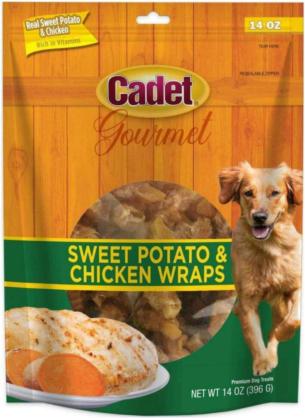 For over 30 years, Cadet has been providing naturally delicious chews and treats dogs love. Made from healthy, real ingredients, Cadet Gourmet Sweet Potato & Chicken Wraps will show your best friend how much you love them! These premium dog treats combine chicken that's high in protein and sweet potato for essential vitamins, making them just as wholesome as they are irresistible. Speaking of nutrition, each limited ingredient dog treat is low in fat no artificial colors, fillers, or flavors! Whether you're training your Cadet or just rewarding them for a job well done, these sweet potato and chicken dog treats are sure to fill them with joy.
